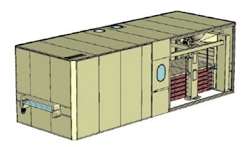 Сушильная установка Multilevel имеет достаточно простую конструкцию, представляет собой изолированную камеру, включающую одну зону конвекции нагретого воздуха с ламинарным воздушным потоком. Оснащена приточным вентилятором для подачи нагретого воздуха и вытяжным вентилятором для отведения летучих органических соединений или водяного пара, образующихся в процессе сушки. В качестве теплоносителя используется вода. Сменные фильтры расположены на входе в приточную систему. Для доступа внутрь сушильная камера оборудована сдвижной дверью. Управление всеми процессами осуществляется при помощи программируемого логического контроллера.
